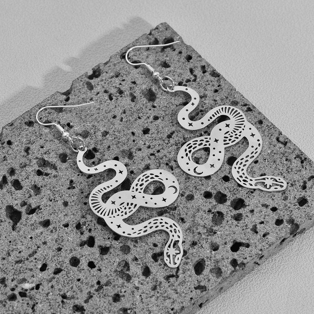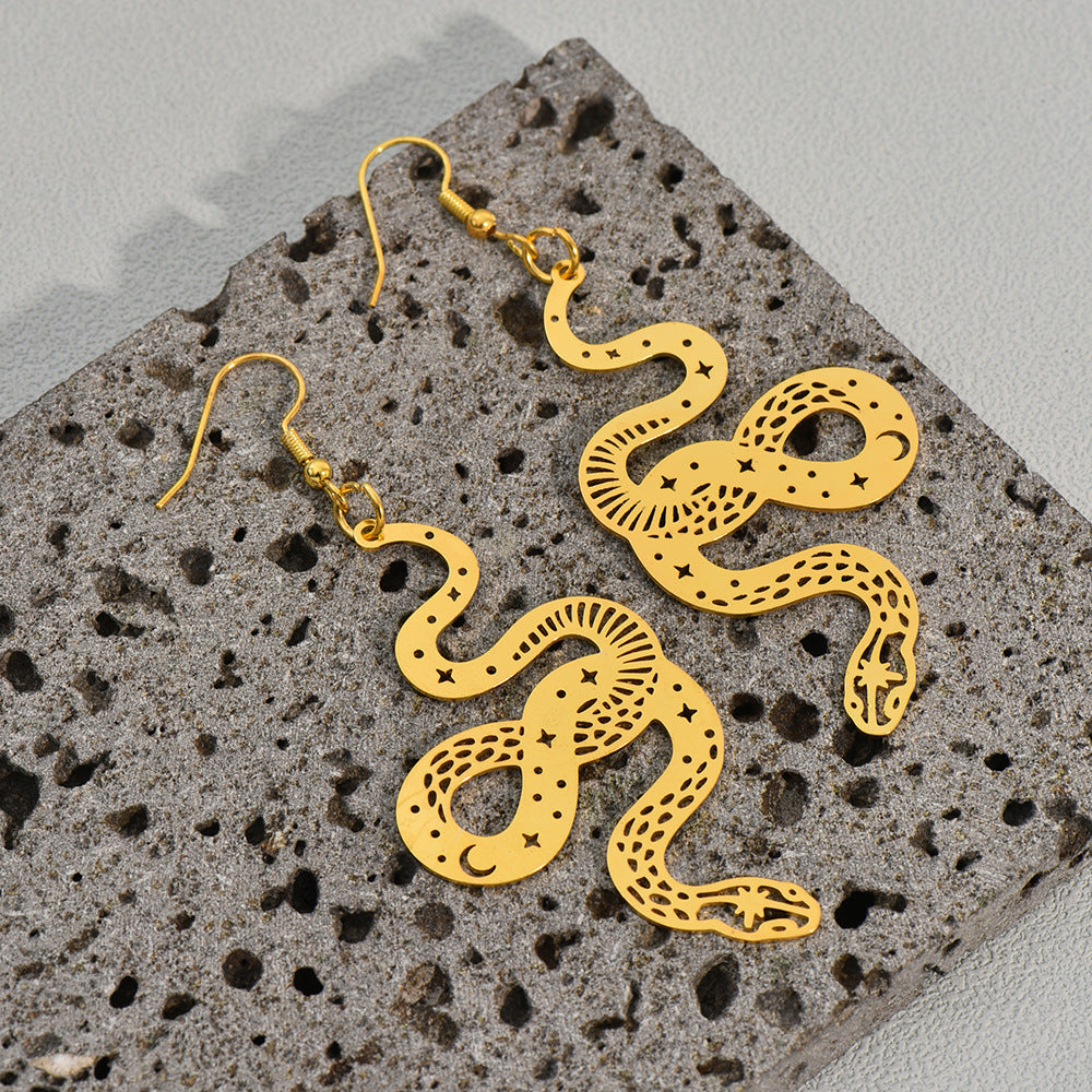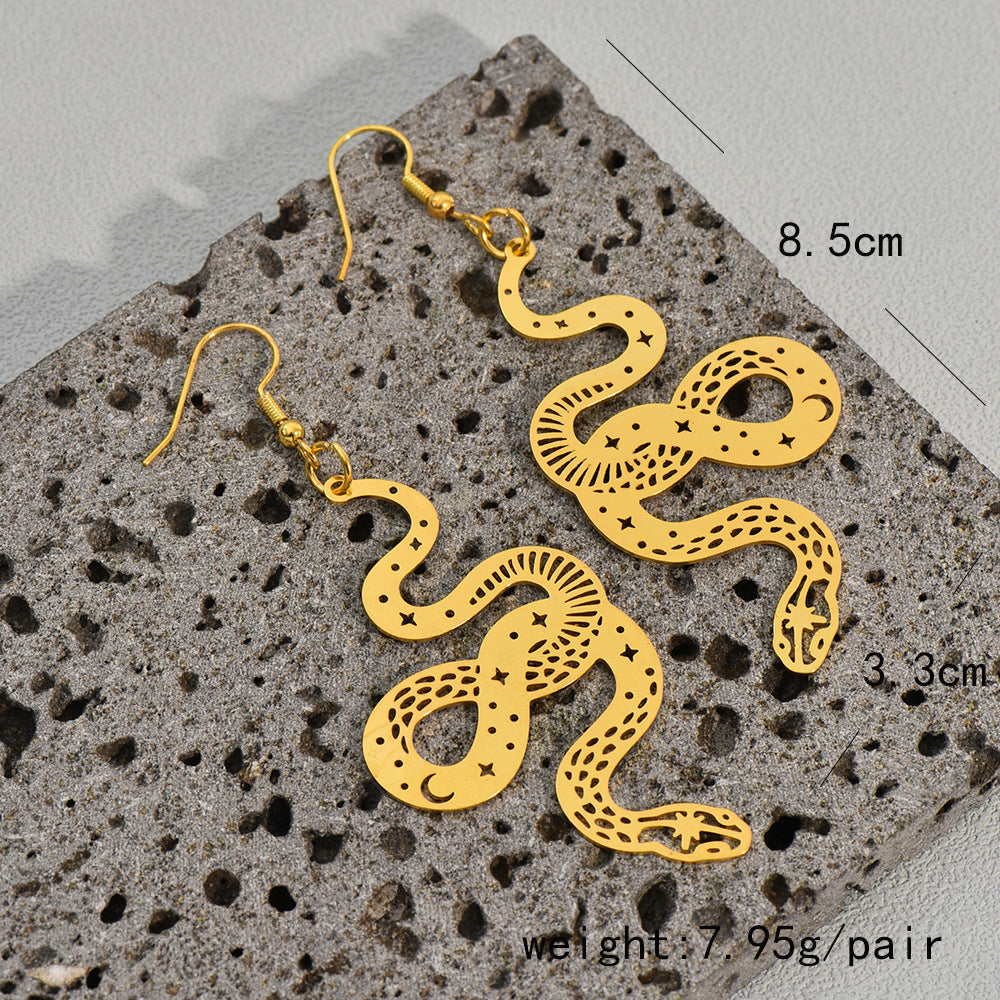 Personalized Design Snake Element Simple Hollow Star And Moon Earrings