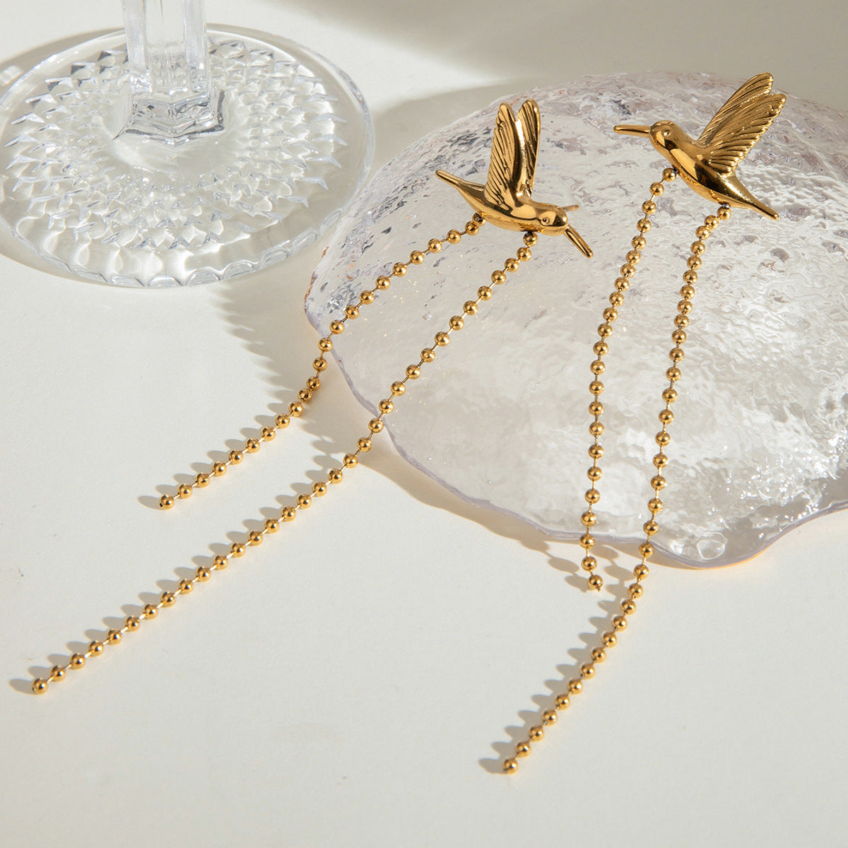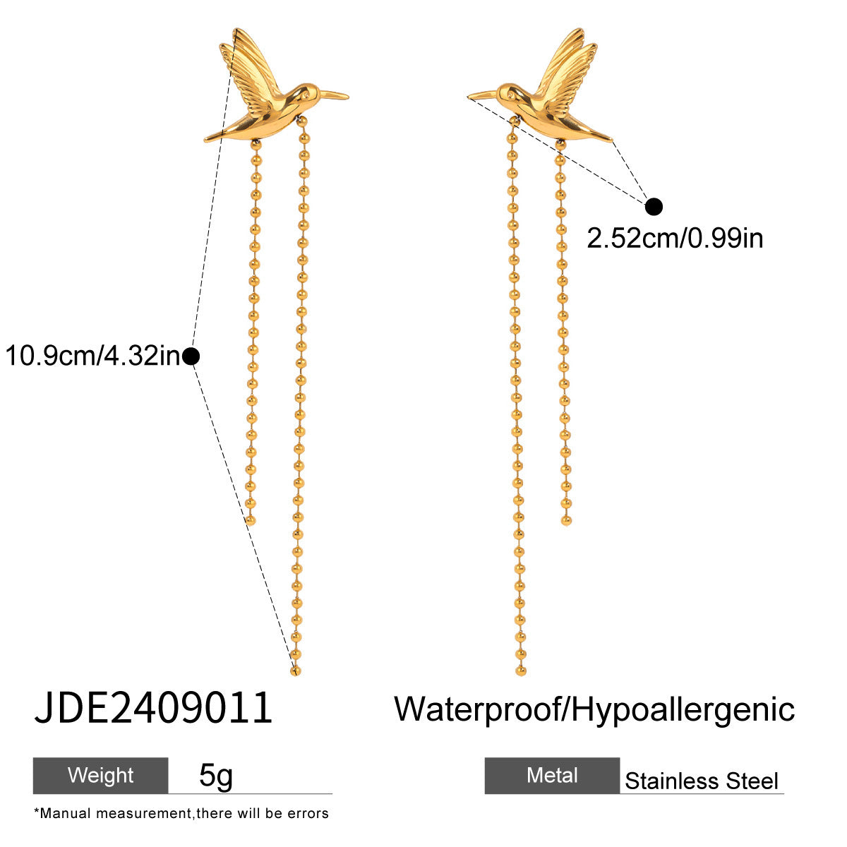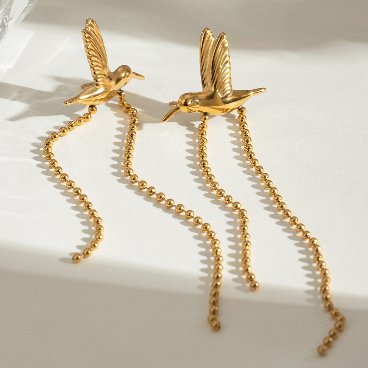 Stainless Steel Gold Peace Dove Tassel Earrings