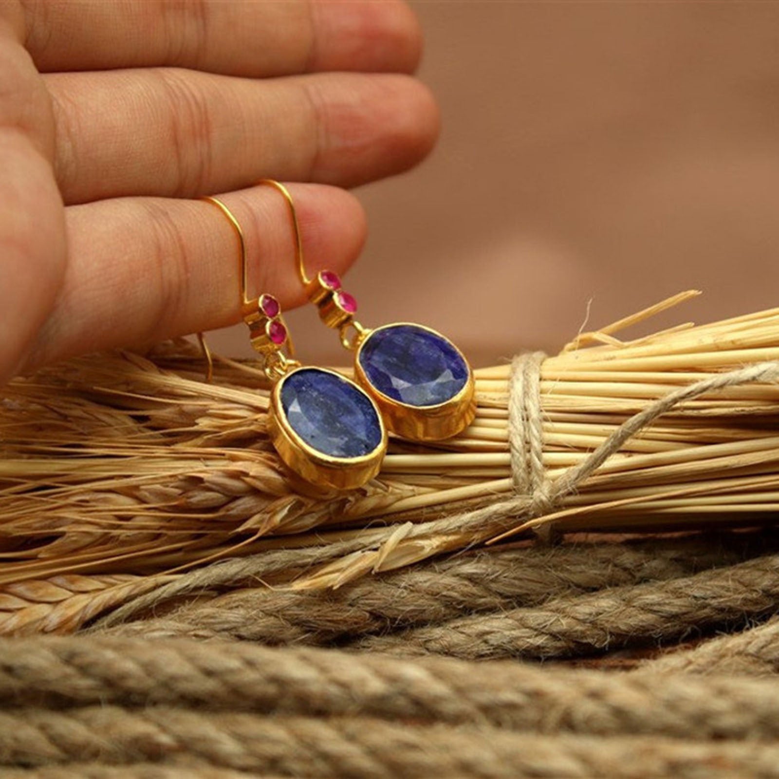 Women's Green Gold Inlaid Ruby Pendant Earrings