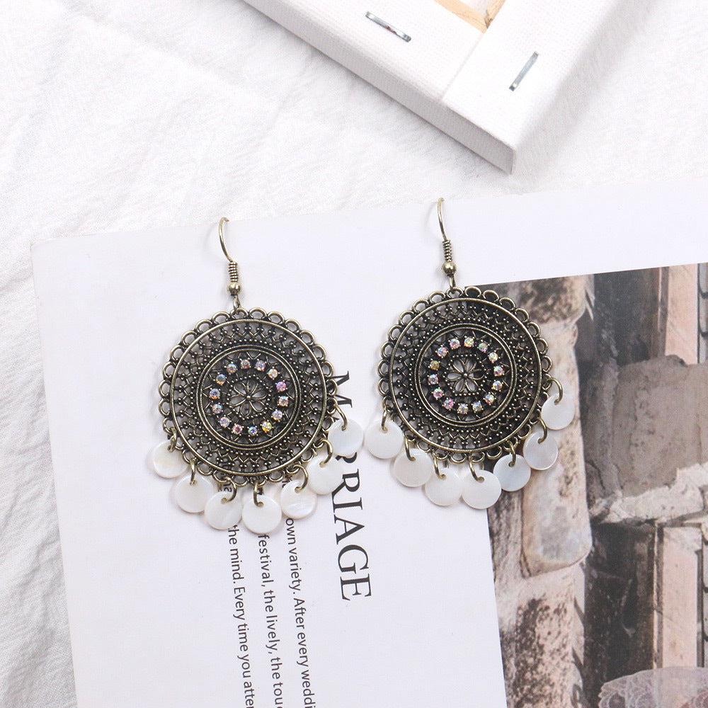 Women's Hollow Flower Round Shell Earrings